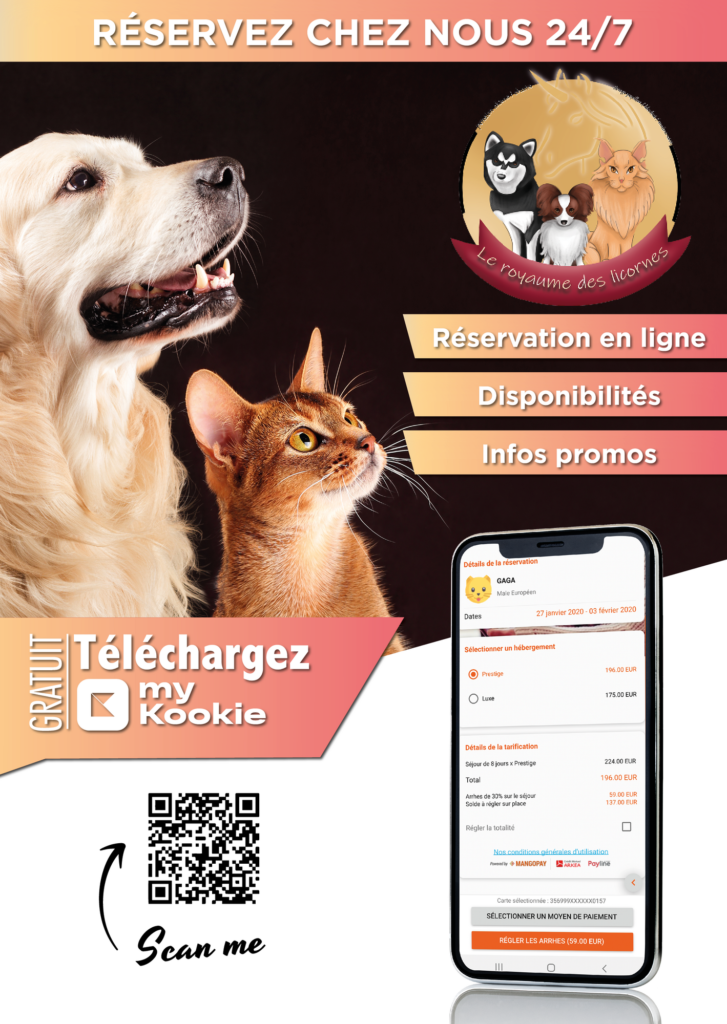 Pour les adoptants des chiots et chatons de mon élevage, un tarif préférentiel sera octroyé à chacun de vos animaux pour leur séjour chez moi.
